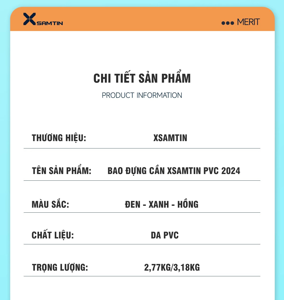 | Tên sản phẩm | Bao Đựng Cần Xsamtin PVC 2024 |