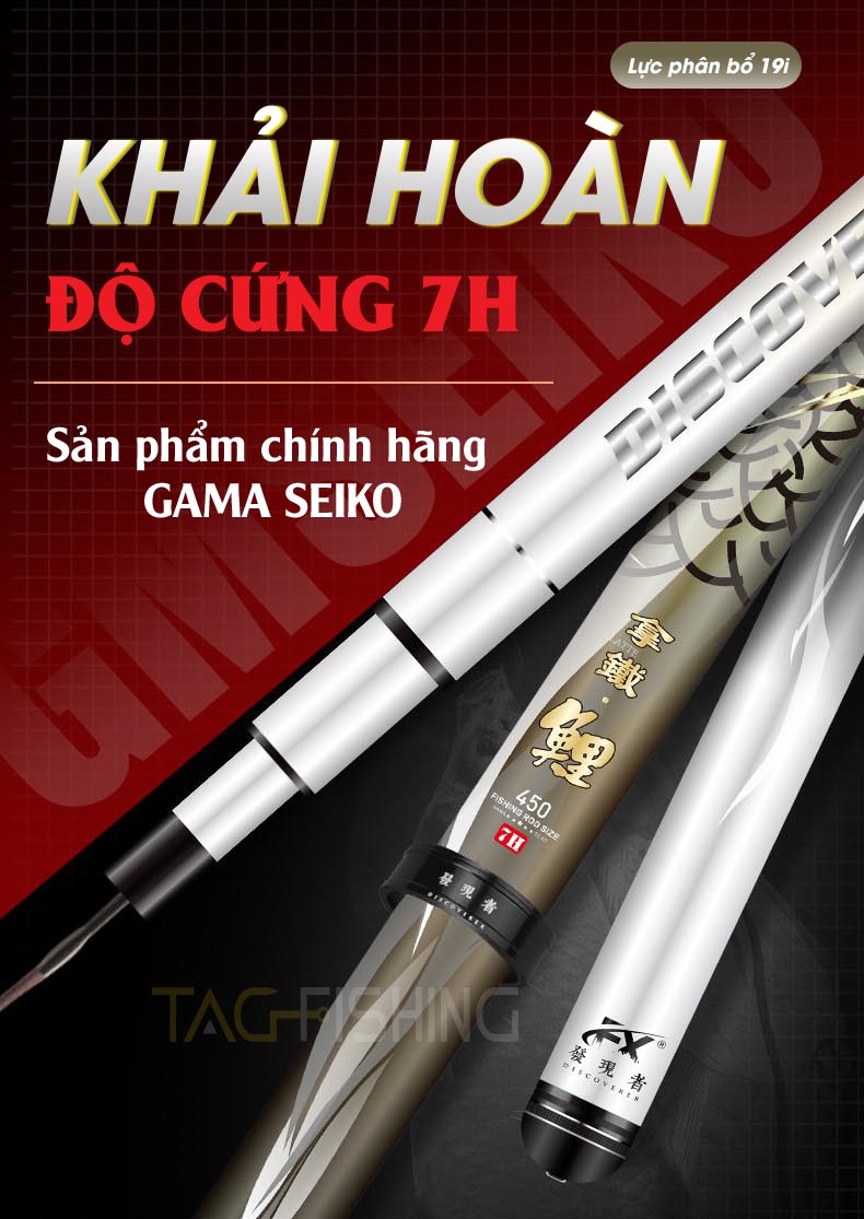 Đối với Cần Câu Gama FX sẽ sử dụng vật liệu Carbon Toray 40-46T mang lại cảm giác nhẹ nhàng, bền bỉ, chắc khoẻ thích hợp câu đa năng cho các cần thủ mới hoặc bán chuyên trong bộ môn câu đài. Tại bài viết này em sẽ giới thiệu với mọi người bộ 4 Cần Gama Seiko – FX Discoverer Khải Hoàn với 4 độ cứng: 4H – 5H – 6H – 7H.