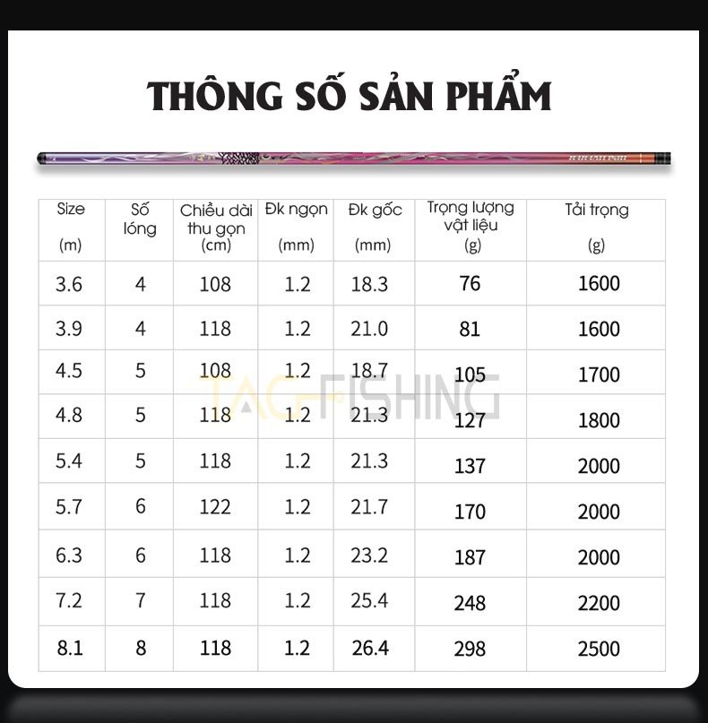 Cần được gia cố đai chống nổ đốt, mạnh mẽ hơn, chặt chẽ hơn để tránh nổ đốt khi chịu lực kéo lớn.Tay cầm chống trơn trượt cho cảm giác thoải mái khi cầm, vẫn chắc tay và nhẹ nhàng khi sử dụng cần lâu. Họa tiết độc đáo, nước sơn cao cấp đẹp mắt và bảo vệ cần, với tông màu tím hồng lạ mắt và tân thời chắc chắn sẽ khiến mọi người “phải lòng” ngay khi nhìn thấy.