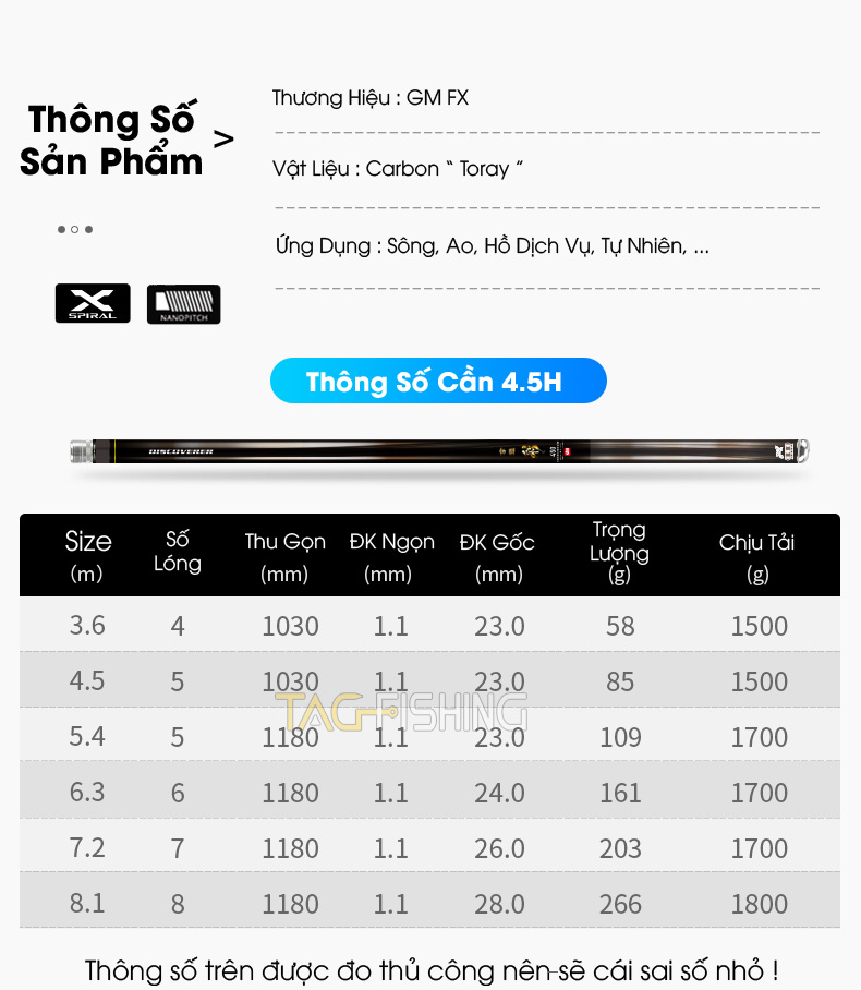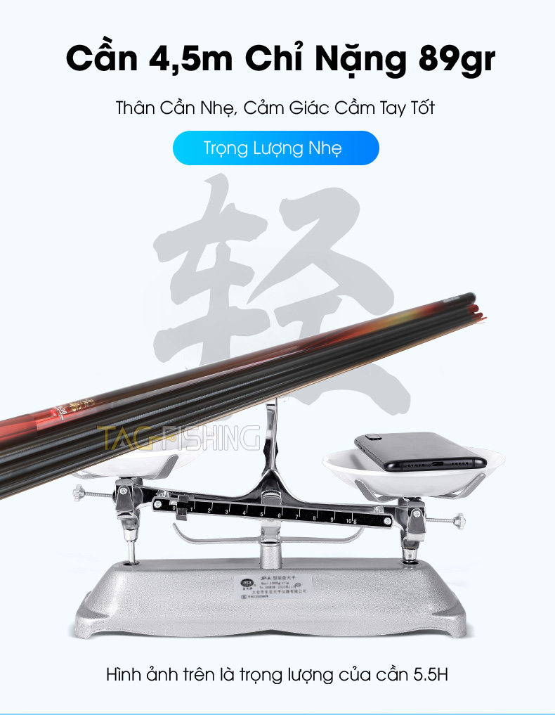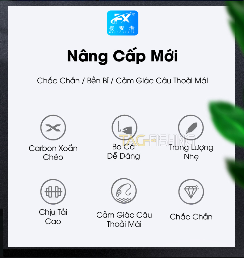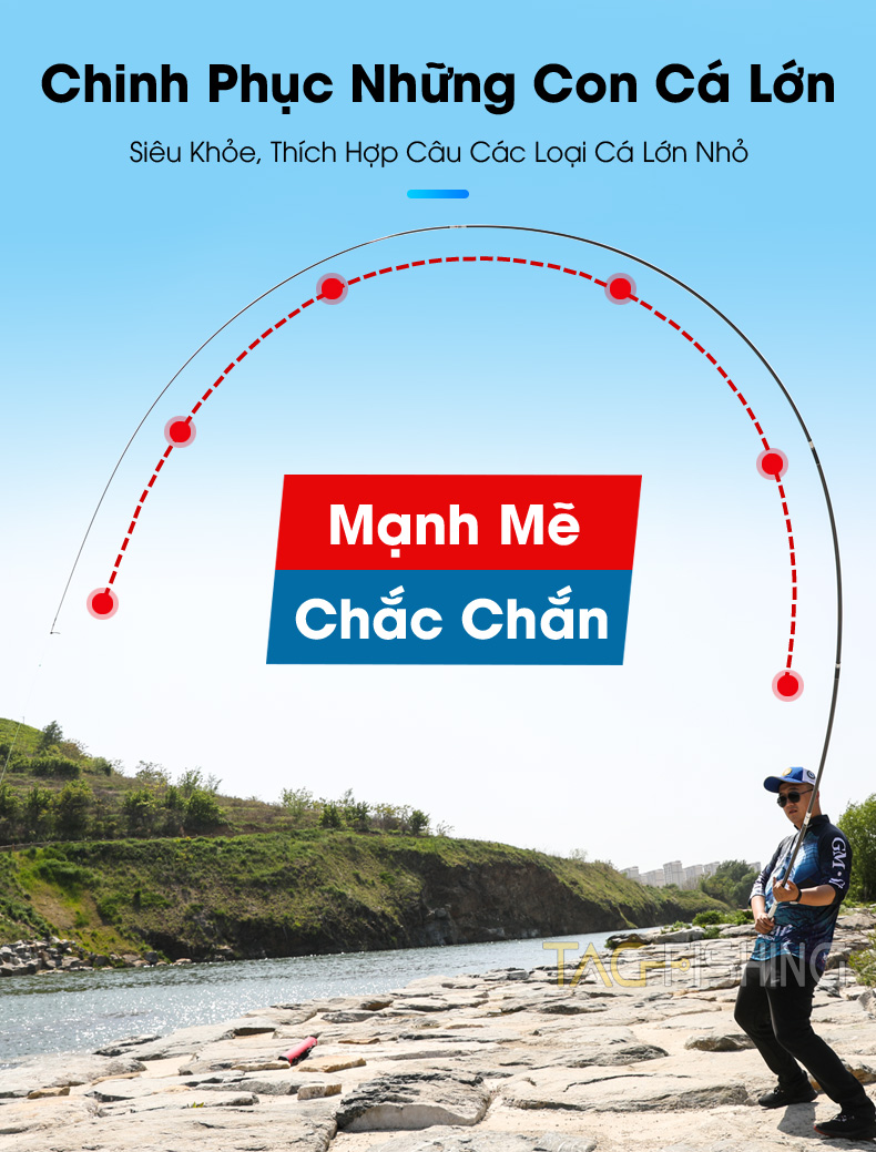 - Được làm từ vật liệu carbon Toray 40T - 46T cao cấp của Nhật Bản mang lại độ nảy tốt cho cây cần.