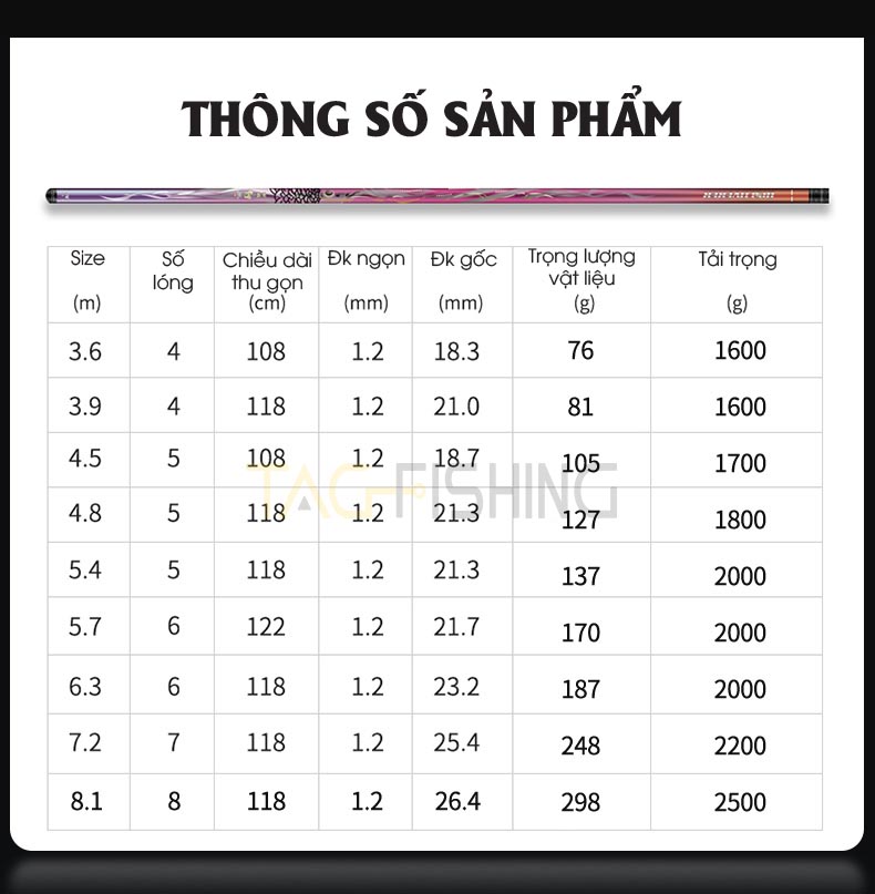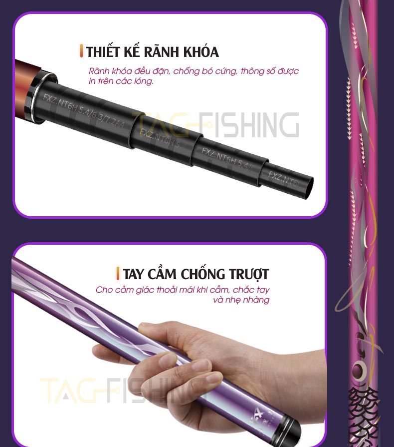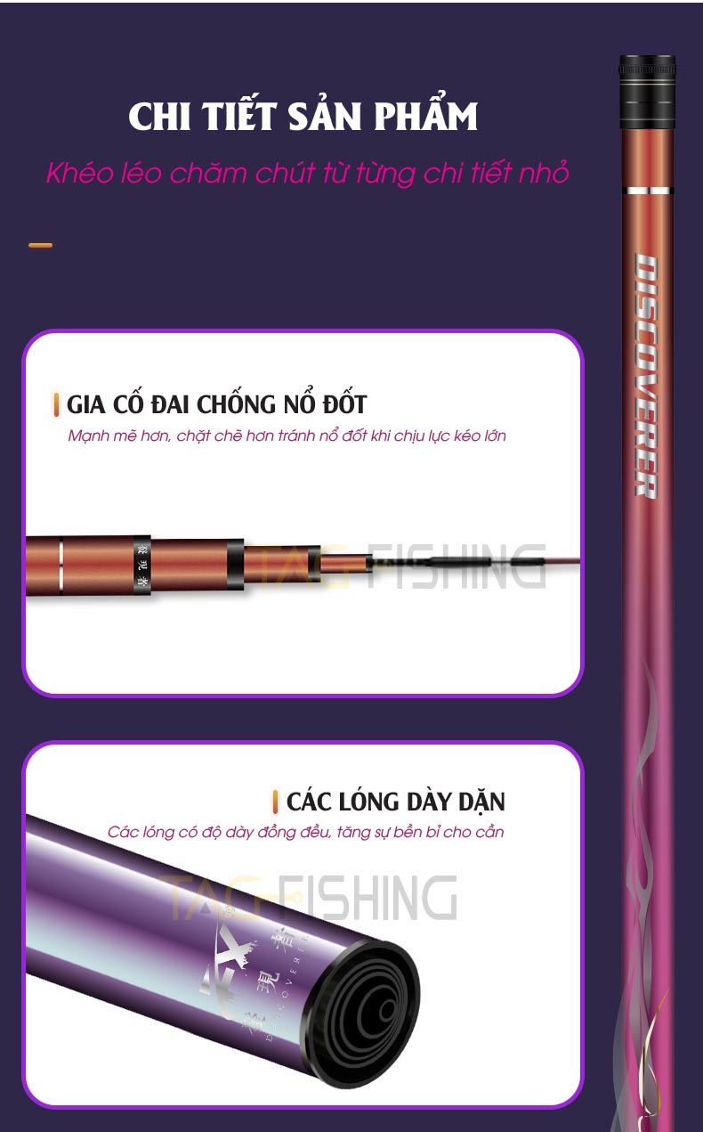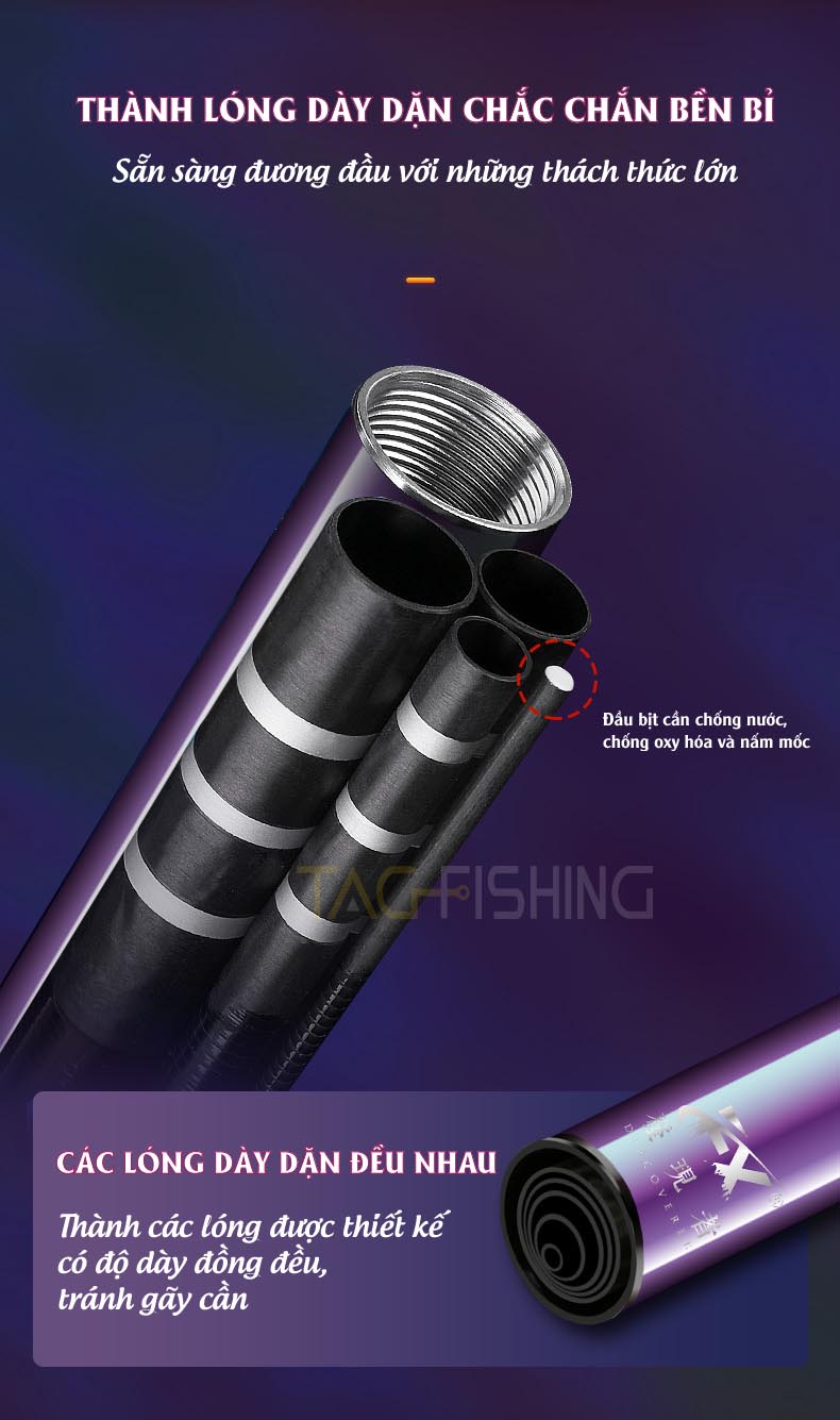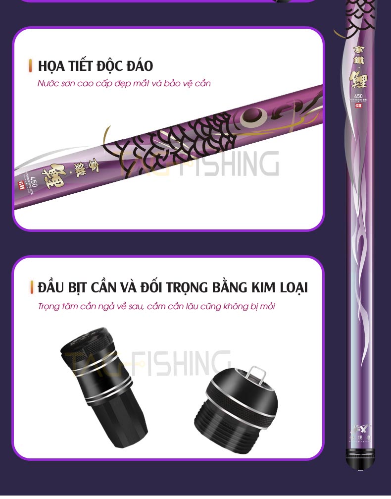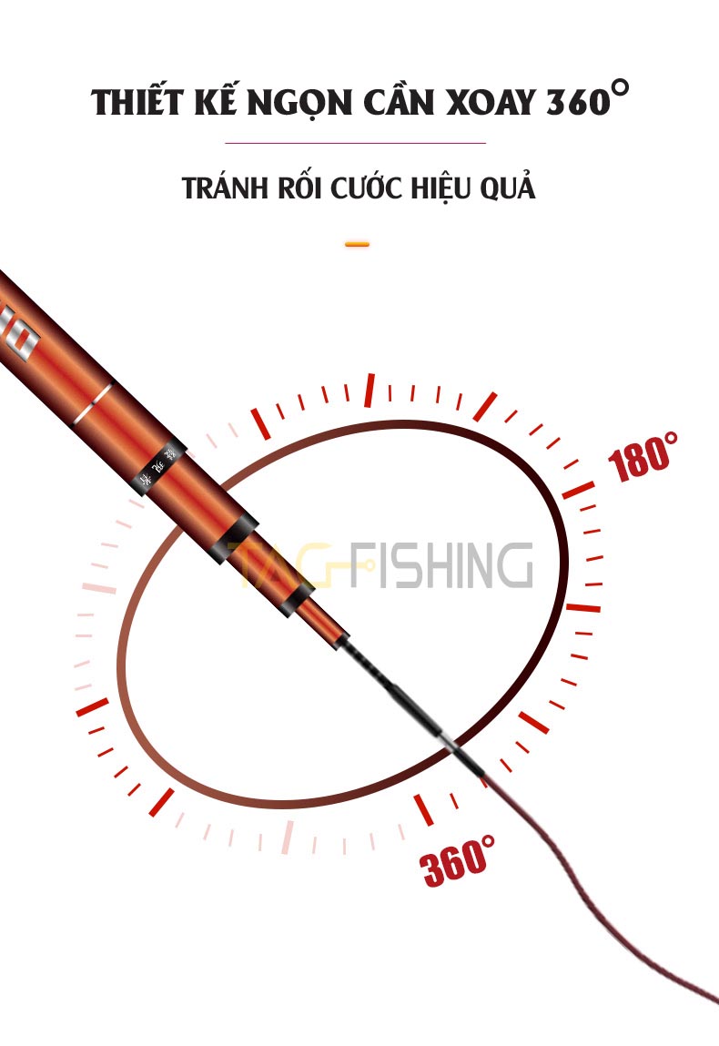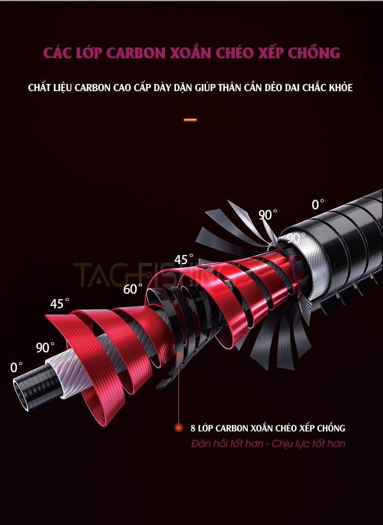 - Được làm từ vật liệu carbon Toray 40T cao cấp của Nhật Bản mang lại độ nảy tốt cho cây cần.