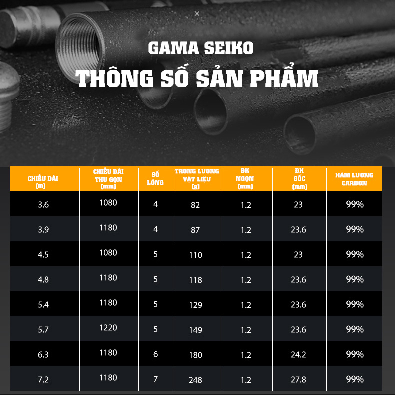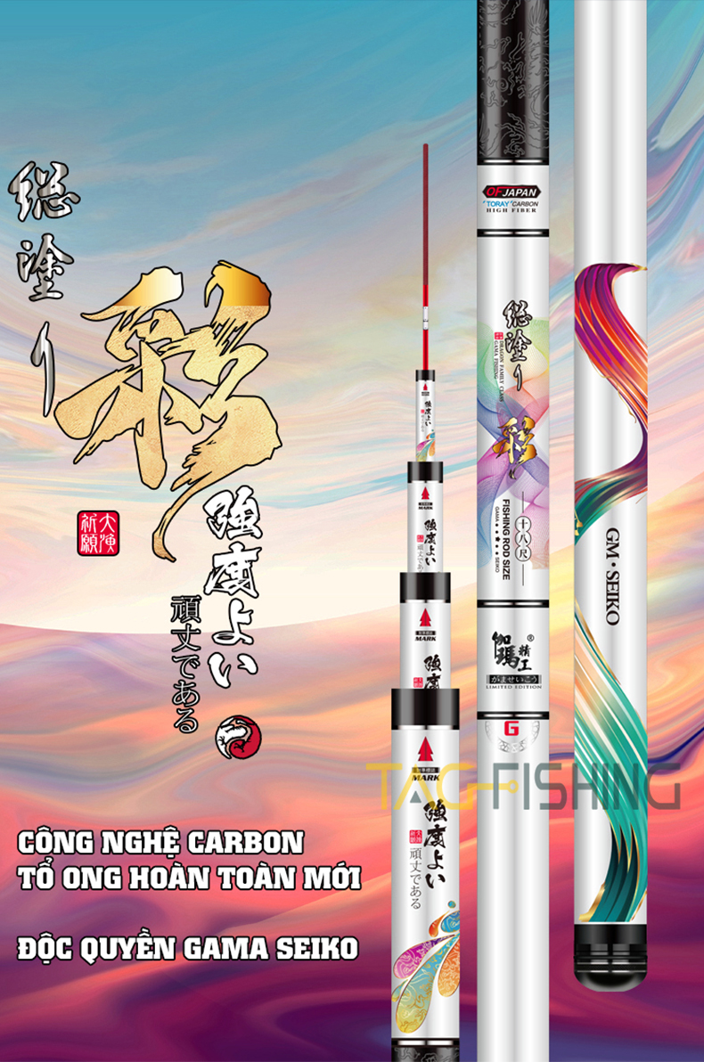 - Được làm từ vật liệu carbon Toray 46T-60T cao cấp của Nhật Bản mang lại độ nảy tốt cho cây cần.
