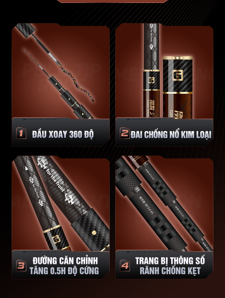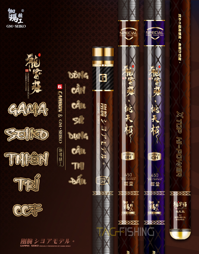 - Cần tay chuyên đánh thi đấu, sử dụng chỉ định trong giải thi đấu CCF Quốc Gia Trung Quốc và Giải thi đấu Tag Fishing Việt Nam