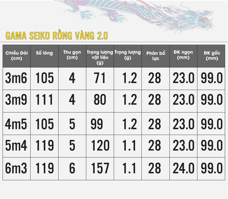 Cần Gama Seiko Rồng Vàng 2.0 vẫn đang “ngát” danh thơm với những trải nghiệm đánh cá chép to tay từ các cần thủ, cụ nào đam mê đánh chép thì em cần này chắc chắn là một lựa chọn không thể bỏ lỡ.