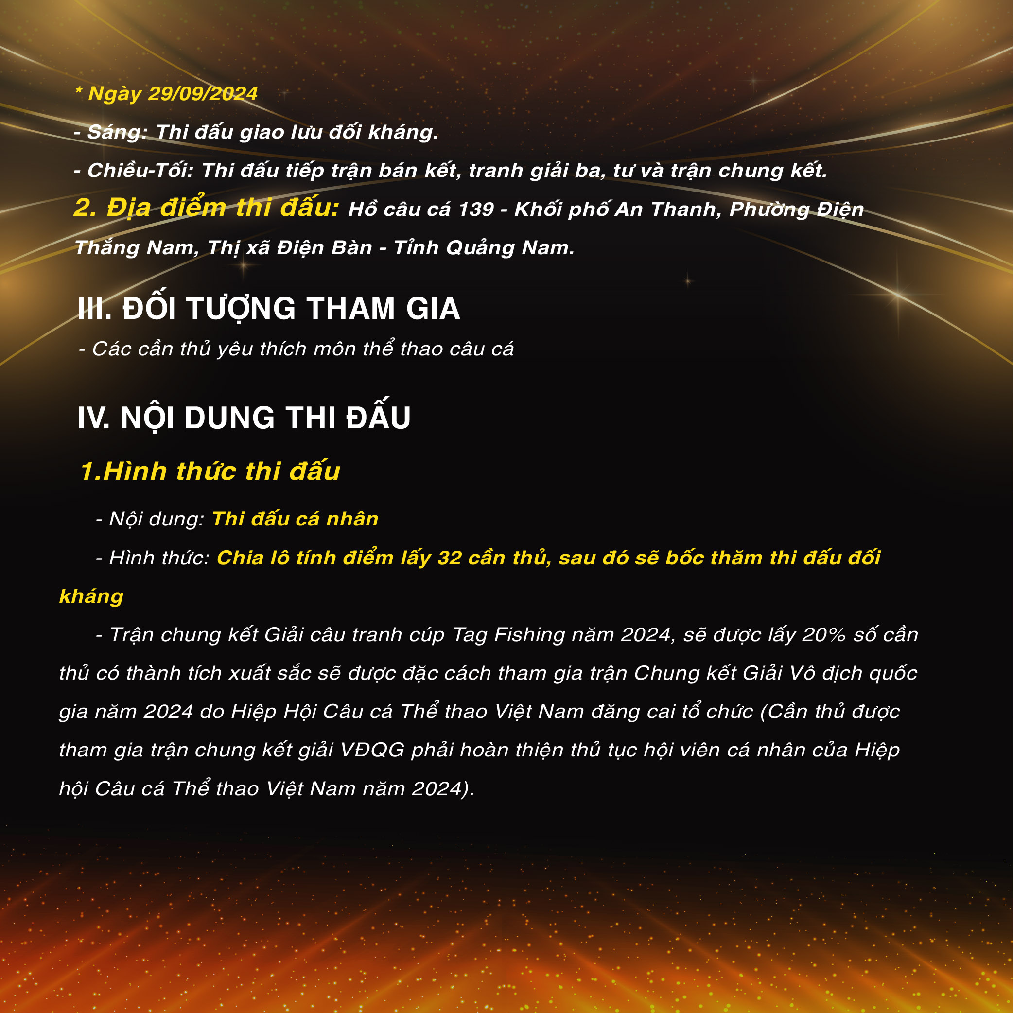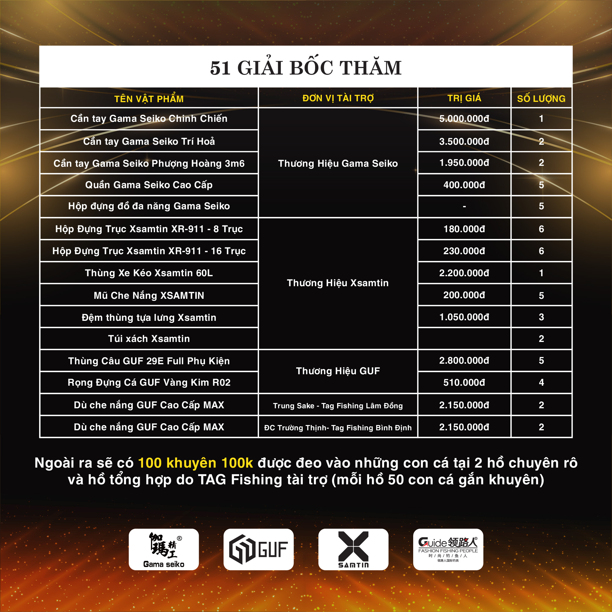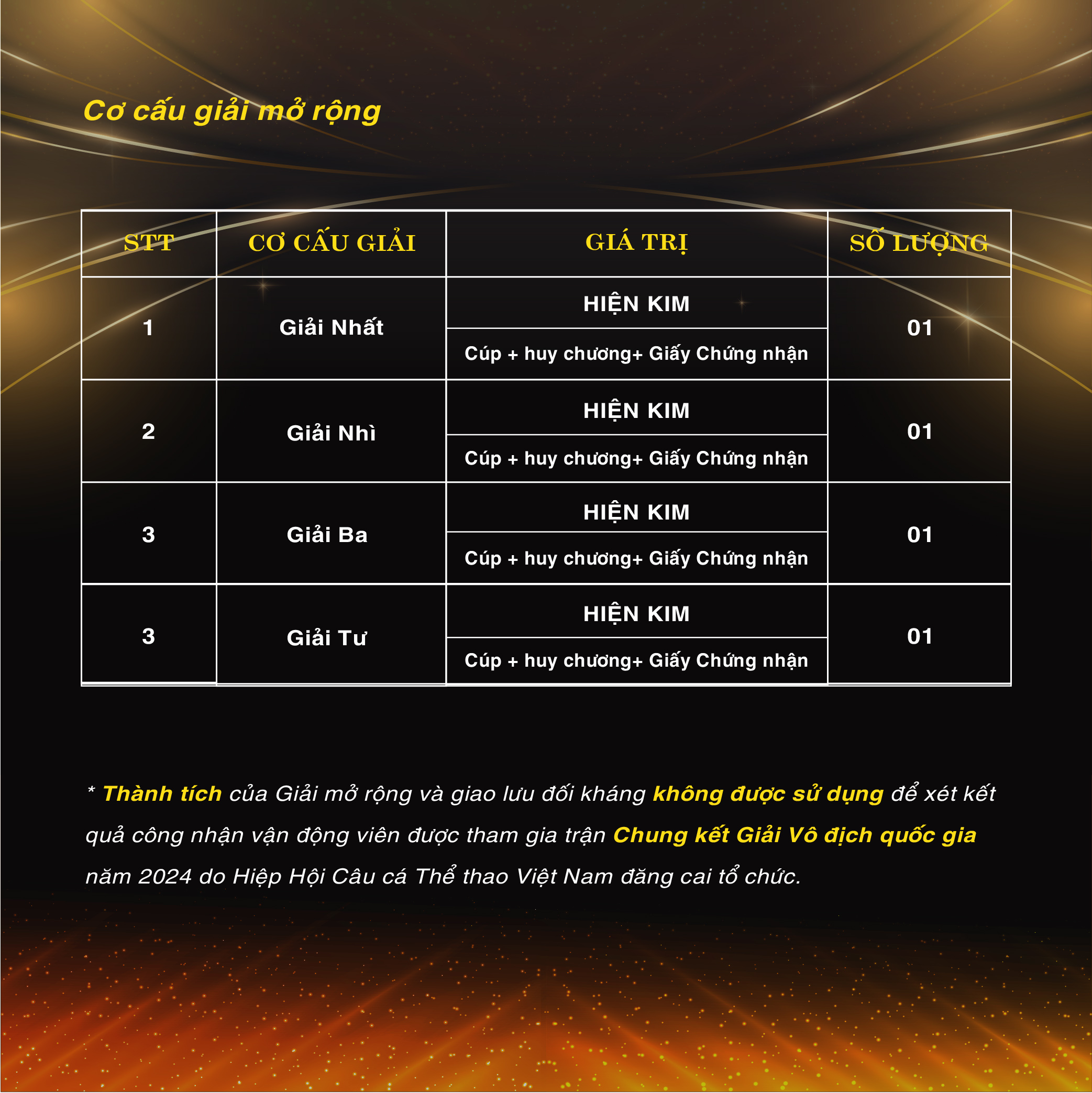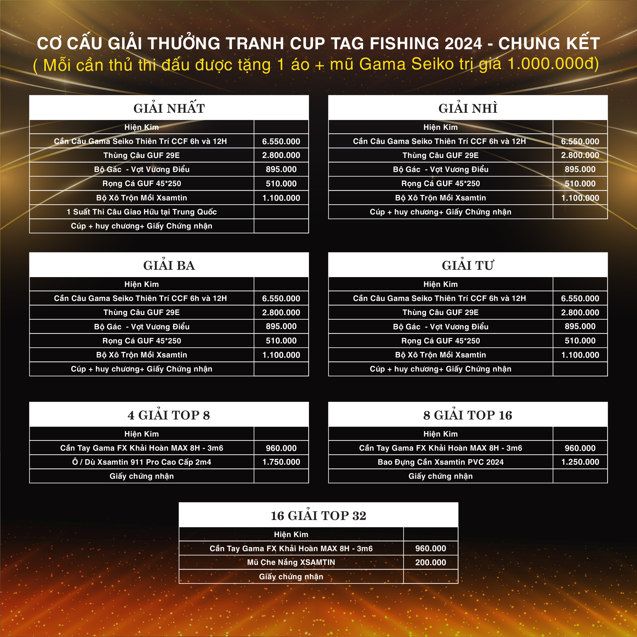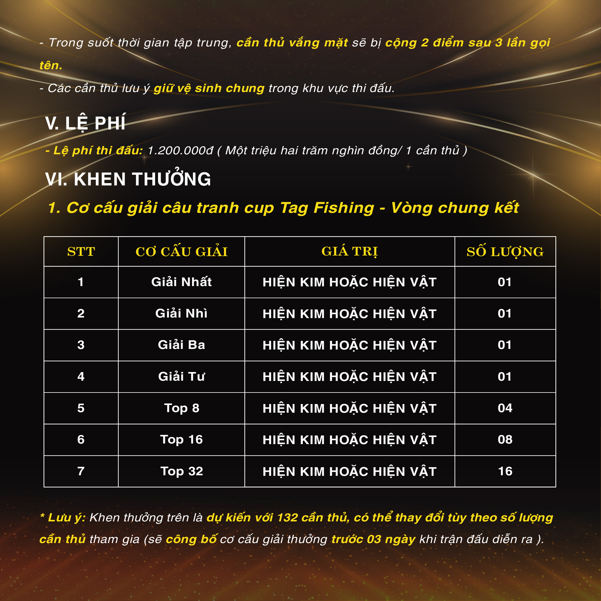 Cơ Cấu Giải Thưởng - Tranh Cup Tag Fishing 2024 - Vòng Chung Kết (dự kiến 132 cần thủ)