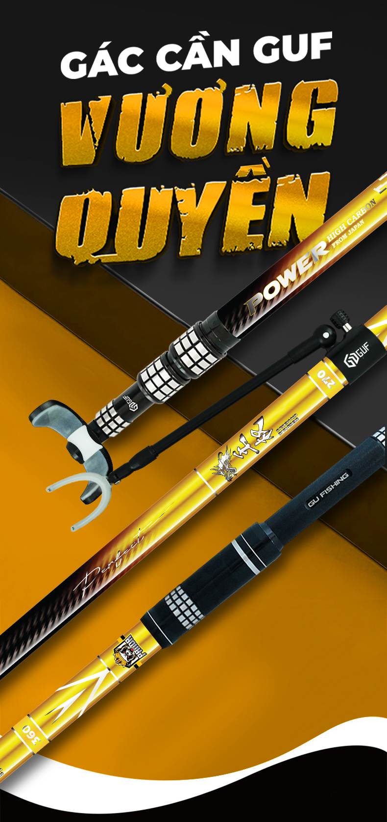 | Tên sản phẩm | Gác Cần GUF S1 Vương Quyền Săn Hàng - Màu Vàng Đen |