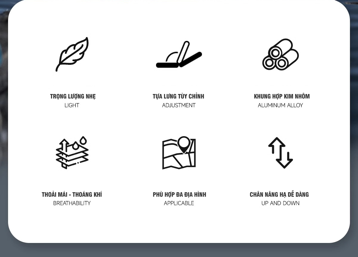 Nổi bật : Có 4 chân địa hình dài bám chặn xuống đất (siêu nhẹ dễ di chuyển)