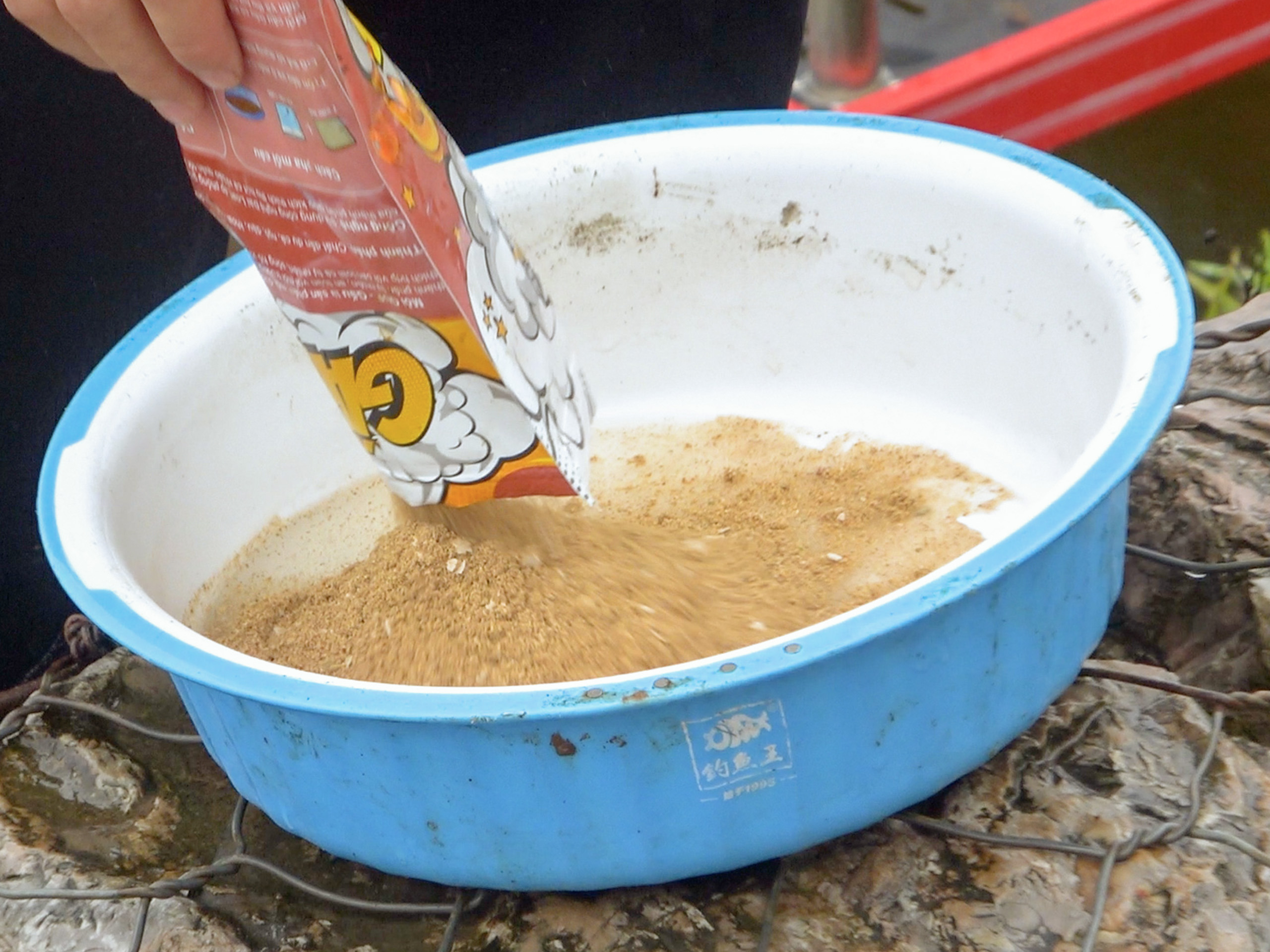 Mồi câu: 0.8 phần nước pha với 1 phần mồi