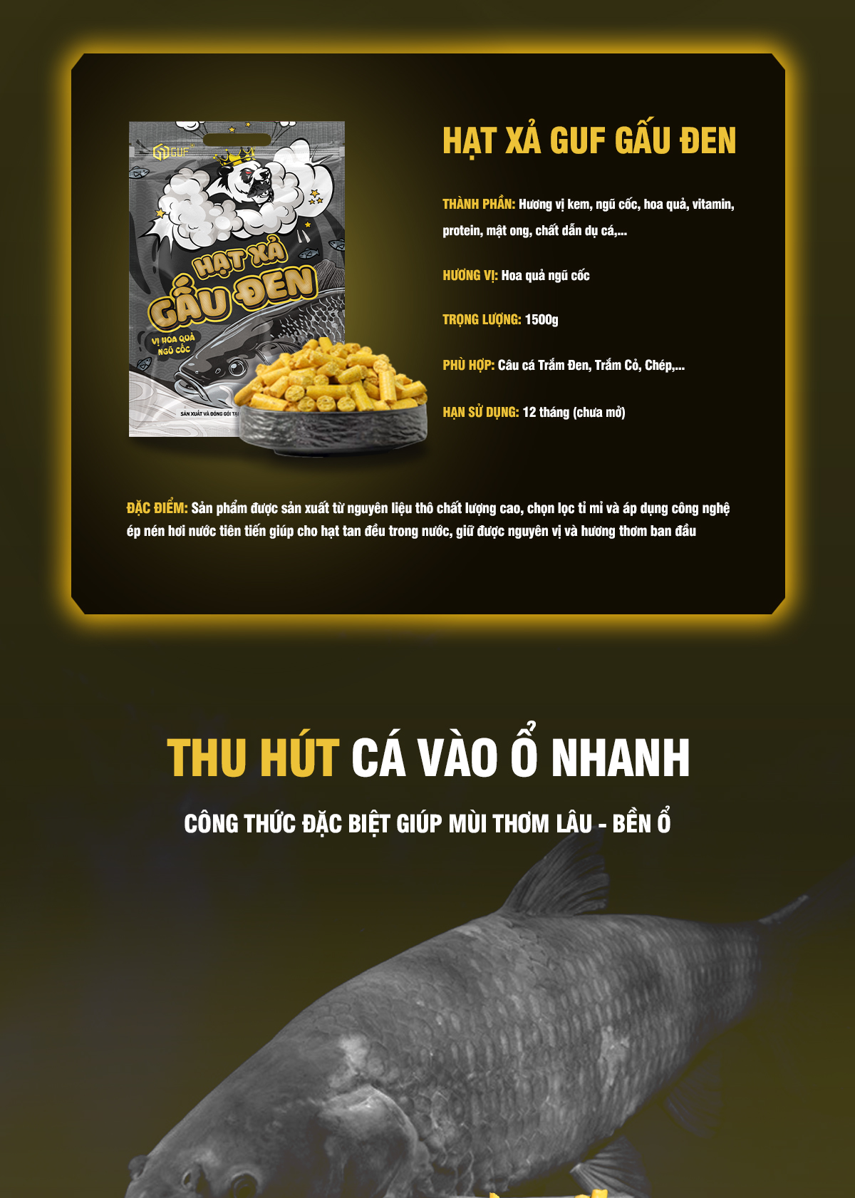 | Loại cá tương thích | Câu Cá Trắm Đen, Trắm Cỏ, Chép |