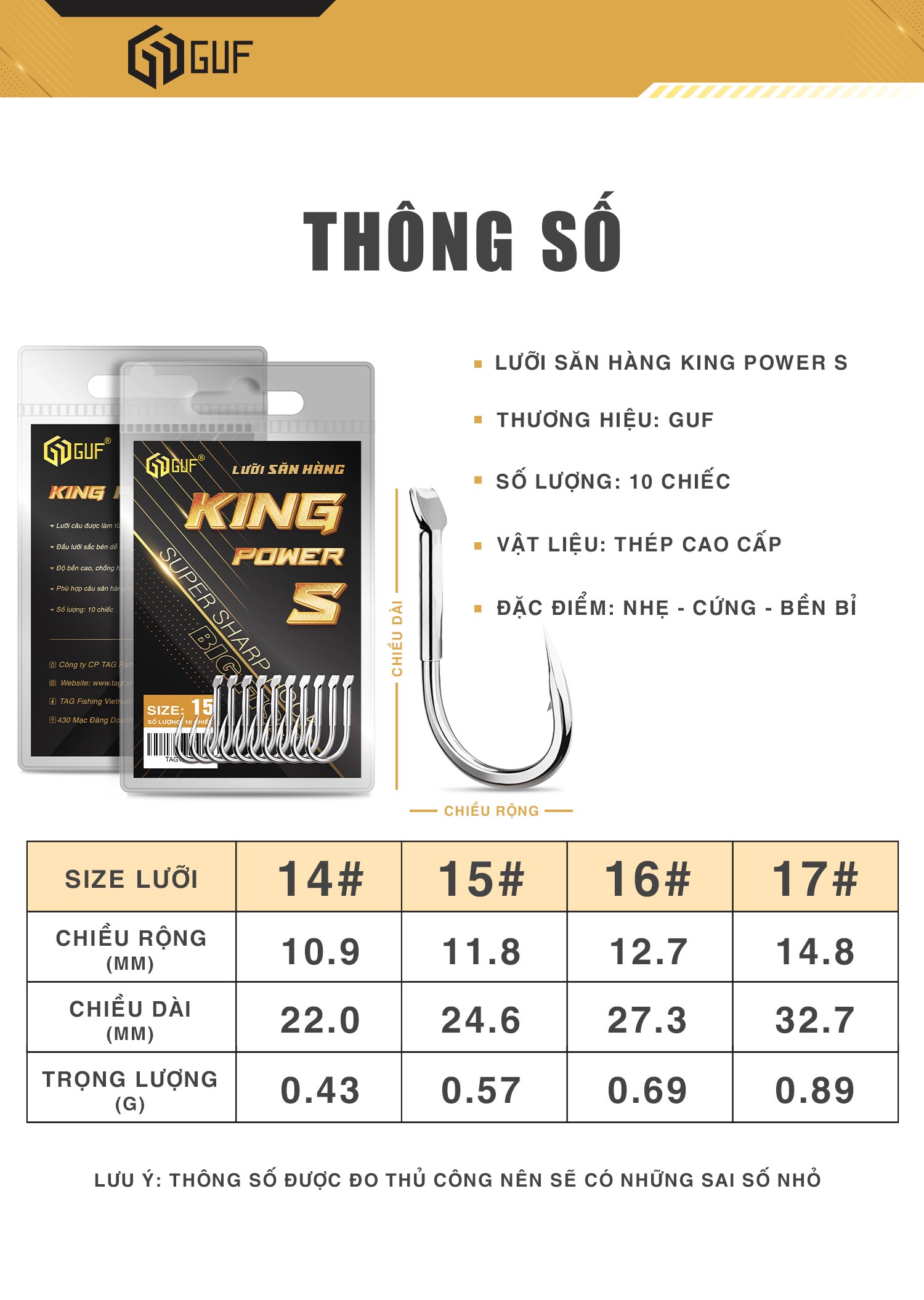 | Tên sản phẩm | Lưỡi Câu GUF Săn Hàng King Power S |