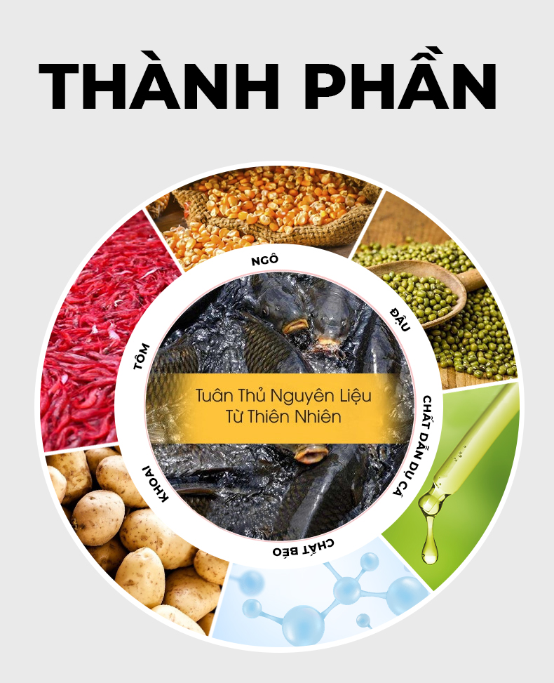 | Thành phần | Ngũ cốc và các thành phần hấp dẫn cá khác |