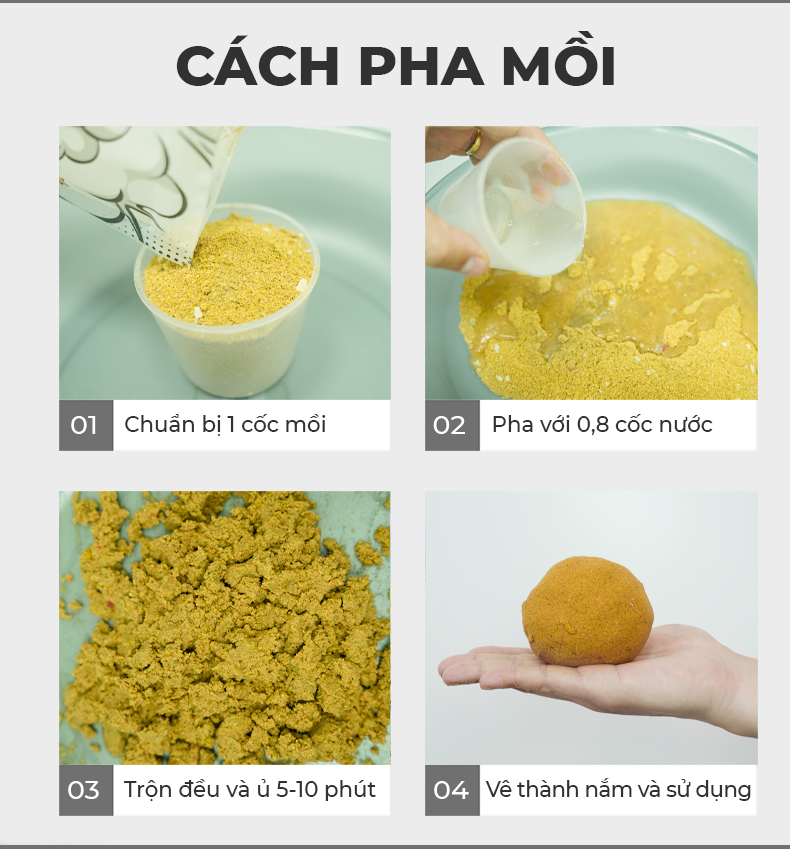 Đặc biệt: công thức dễ dàng, pha mồi cực kì đơn giản, dễ dùng phù hợp cho khách hàng câu tự nhiên, dịch vụ hay thi đấu.