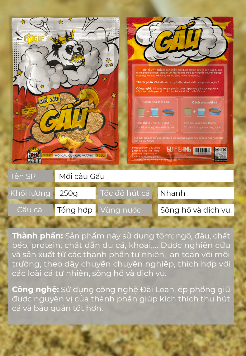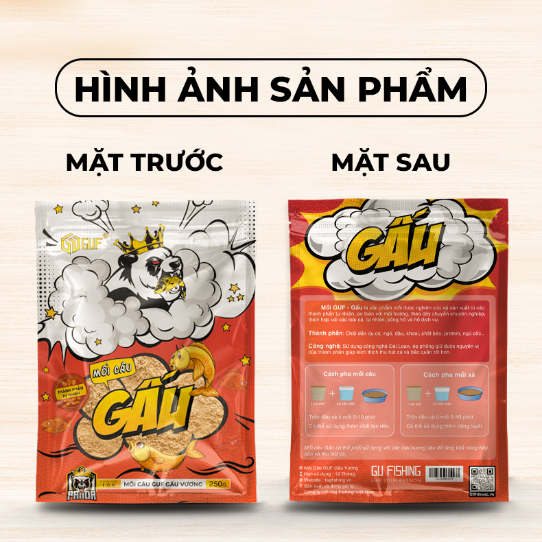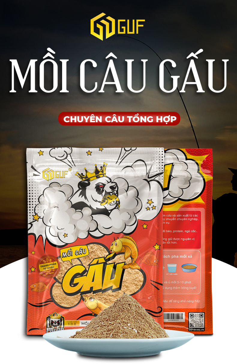 | Tên sản phẩm | Mồi Câu Cá Tổng Hợp GUF Gấu Vương |