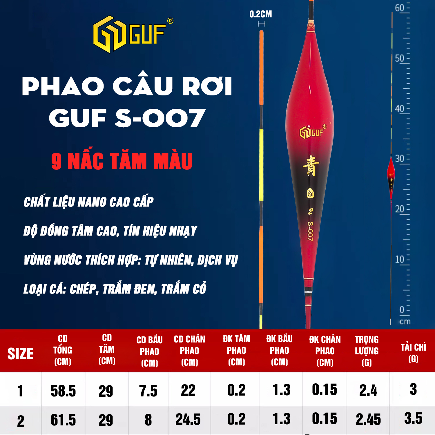 | Tên sản phẩm | Phao Câu Rơi GUF S-006/S-007 |