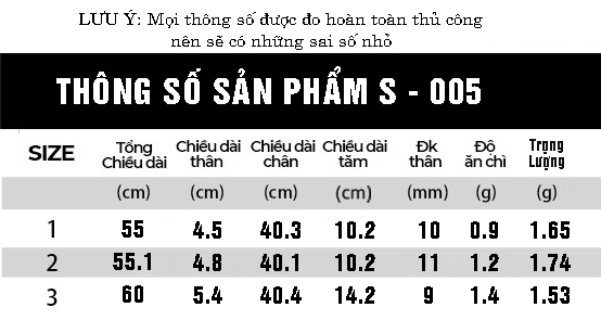 | Chiều dài | 55.0 - 55.1 - 60.0 cm |