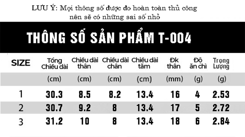Chiều dài: 30.3 - 30.7 - 31.2 cm