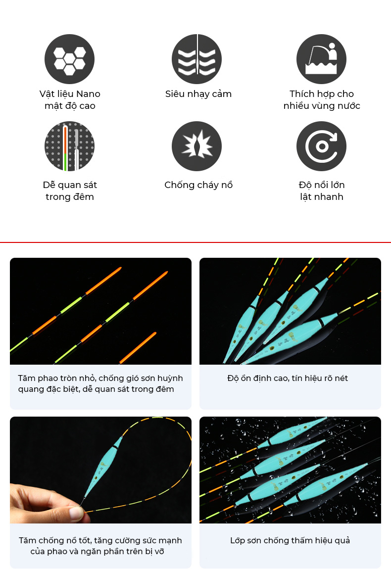 Đặc biệt: Sản phẩm được hoàn tiện tỉ mỉ, chi tiết từng phần như tăm phao, thân phao hay chân phao đều được thiết kế sắc nét