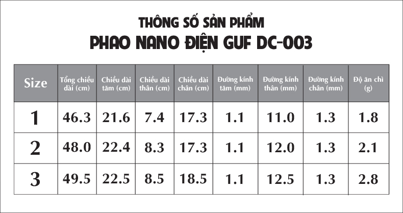 | Tên sản phẩm | Phao Nano Điện GUF DC-003 |