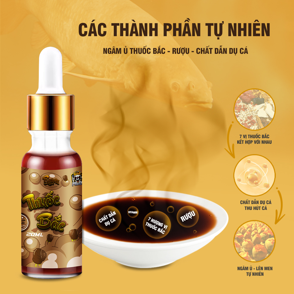 Rượu Thuốc Bắc GUF được chiết xuất từ 7 loại thảo dược quý kết hợp với rượu nguyên chất và chất dẫn dụ được lên men tự nhiên, tạo nên hương thơm đậm đặc, kích thích cá trắm đen từ xa.