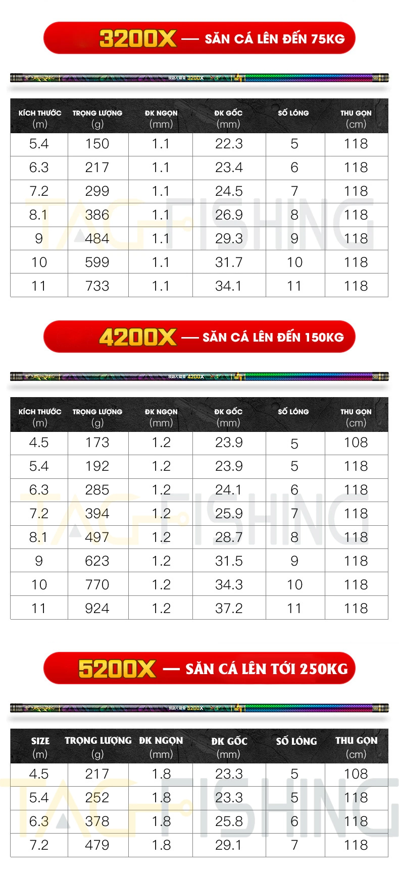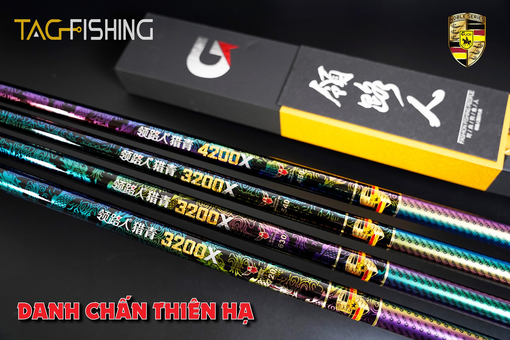 Đầu tiên phải kể đến cây cần siêu khủng với sức chịu tải cực cao lên đến 75kg - 150kg tùy từng phiên bản - đó là cần Danh Chấn Thiên Hạ. Em này chắc cụ nào đam mê săn hàng ít nhiều cũng nghe đến tên tuổi em nó cùng những “trận chiến thành danh” rồi. Nhìn bên ngoài đúng ba chữ “Đẹp - Độc - Đỉnh” luôn. Em đi câu cầm Danh chấn em chẳng nói điêu chứ ông cần thủ bên cạnh cứ phải nhìn em vài lần :v