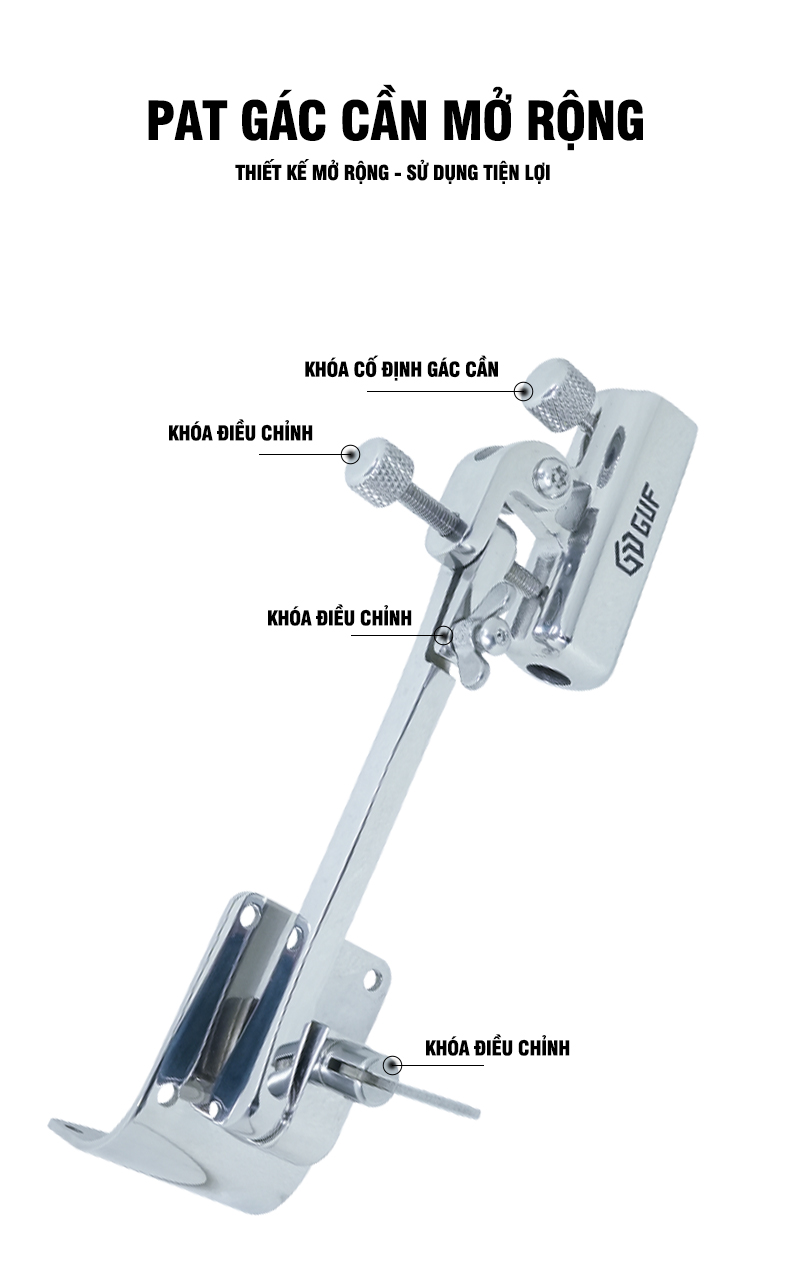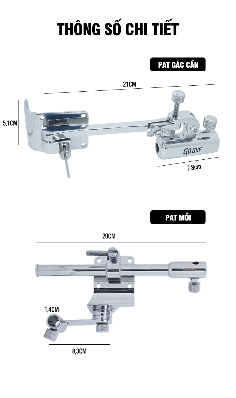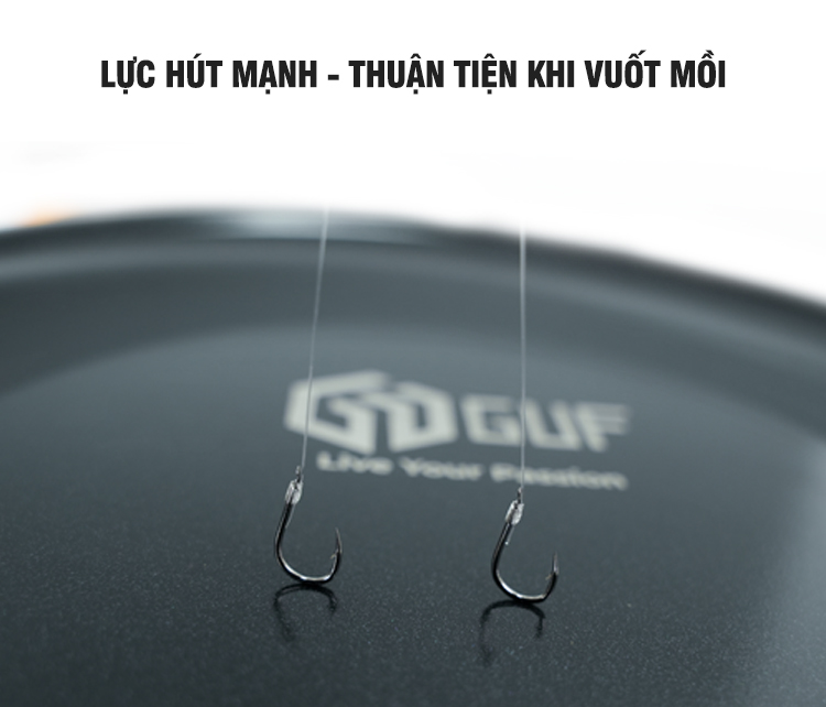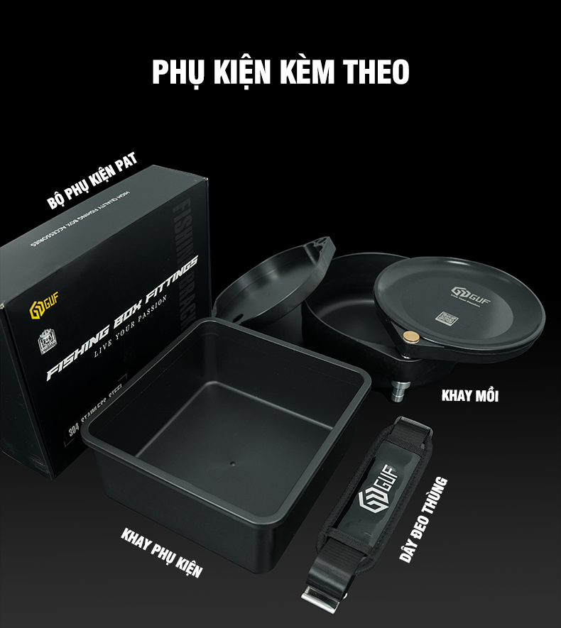 | Phụ kiện đi kèm | Bộ pat inox GUF, Khay đựng mồi vuối GUF, Dây đeo vai, Khay đựng phụ kiện |