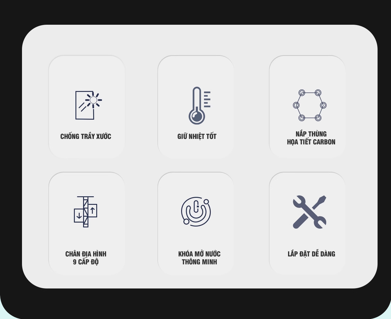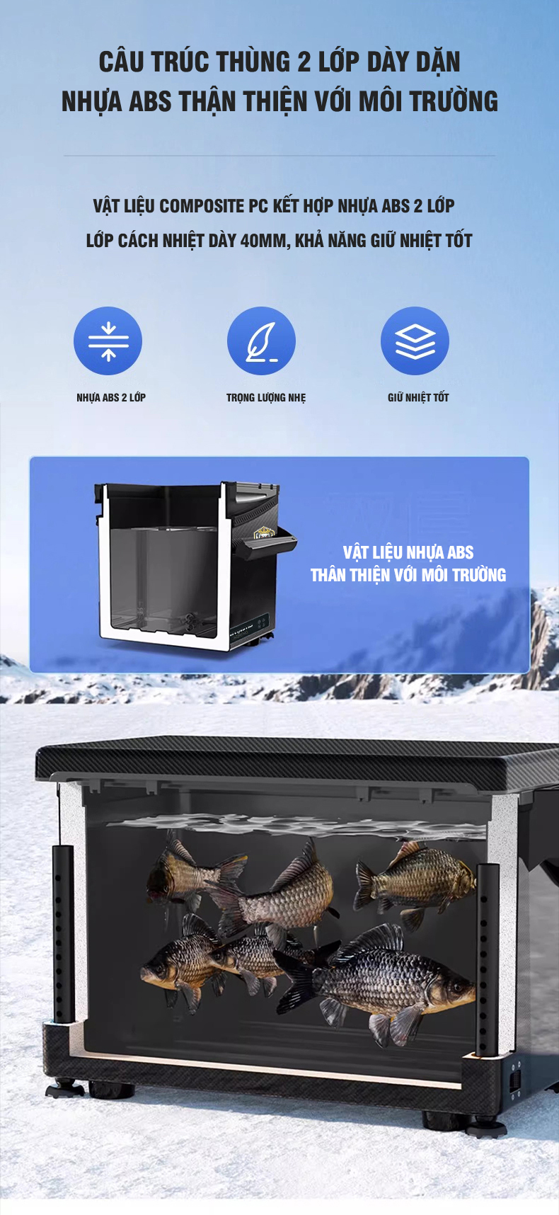 Đặc Biệt : Thùng được làm họa tiết nhám chống trầy xước hiệu quả hơn 90%, Thùng câu với trọng lượng nhẹ, chất lượng cao, thẩm mỹ và bền bỉ.