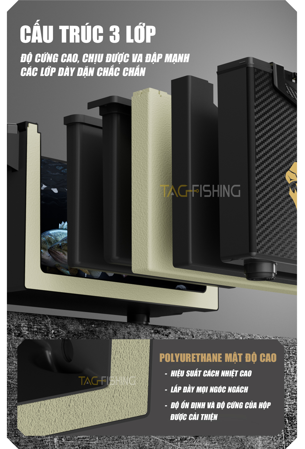 Chất liệu: Cấu trúc 3 lớp cách nhiệt bằng vật liệu Polyurethane mật độ cao hiệu suất cách nhiệt tốt, giúp giữ nhiệt lâu hơn, bảo quản tốt hơn.