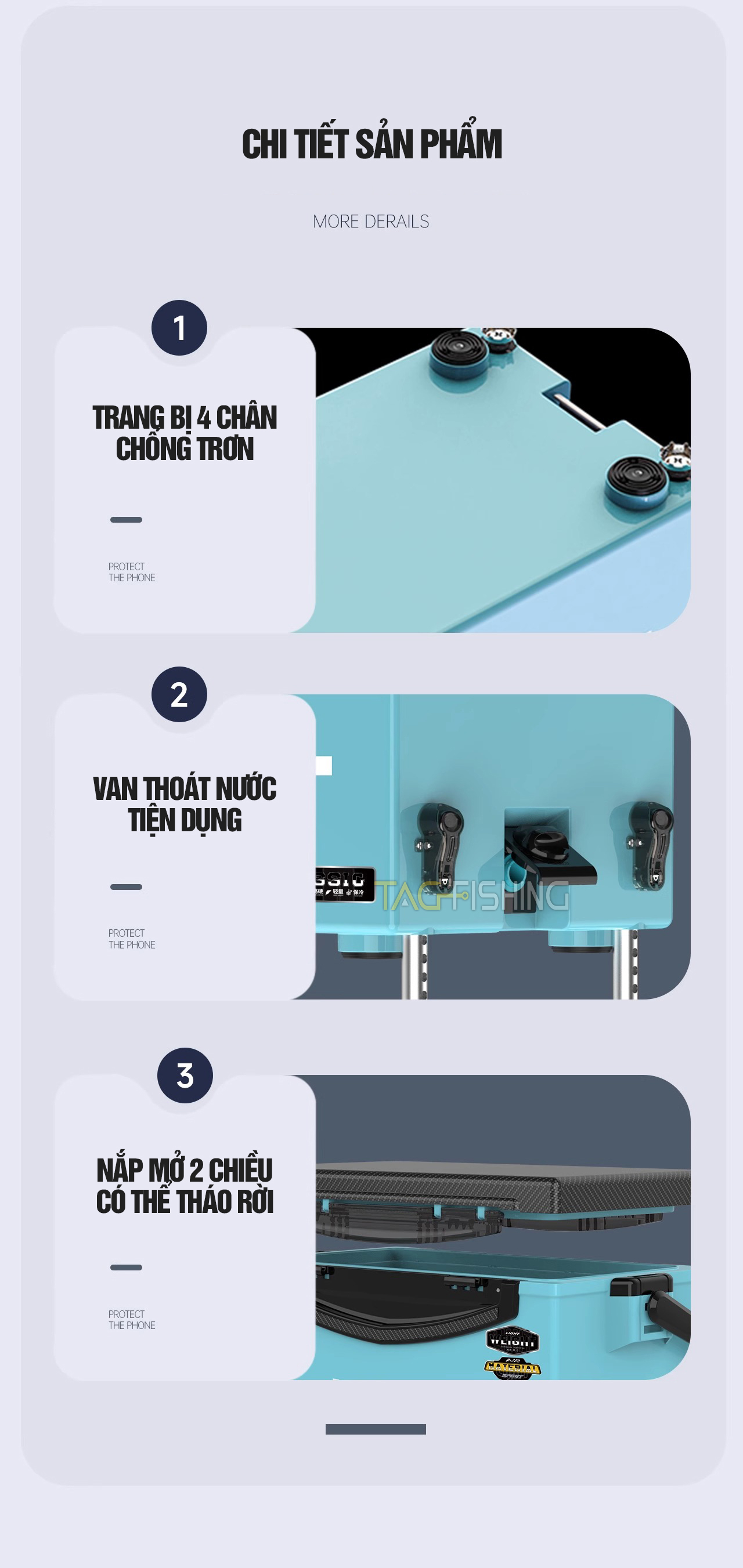 Đặc Biệt : Nước sơn tốt trống bay màu, Thùng câu với trọng lượng nhẹ, chất lượng cao, thẩm mỹ và bền bỉ.
