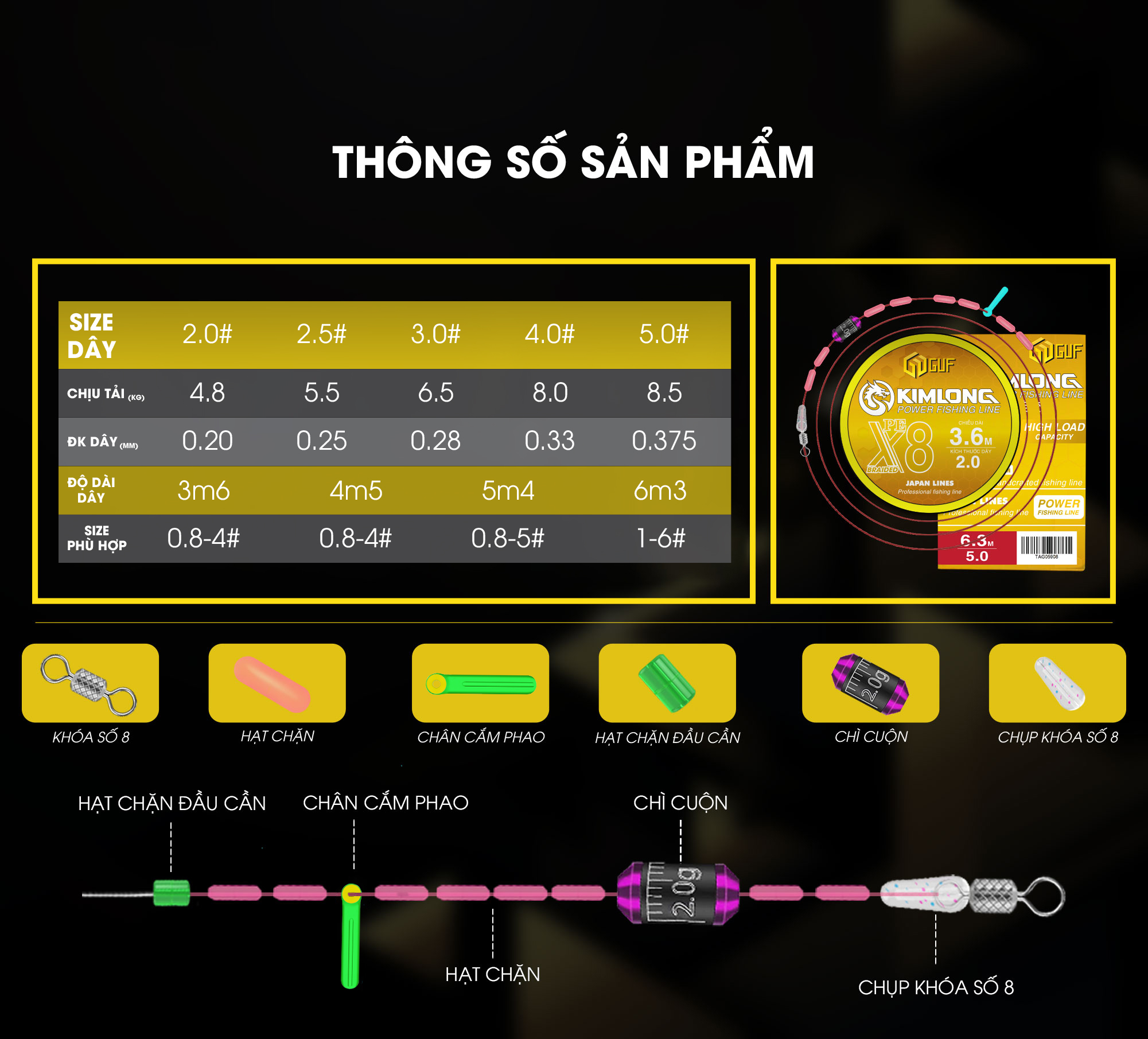 | Thích hợp | Làm dây trục câu đài sẵn |